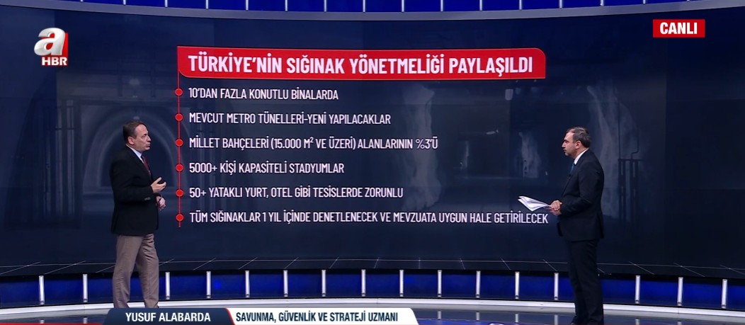 Çevre, Şehircilik ve İklim Değişikliği Bakanlığı, yaklaşık 6 ay süren çalışmanın ardından Türkiye'nin sığınak yönetmeliğini yeniledi. Bakan Kurum konuya ilişkin "Ülkemizin sığınak yönetmeliğini günümüz ihtiyaç ve koşullarına uygun hale getirerek güncelledik. Mevcut sığınaklara denetim şartı ve ilave standartlar, yeni yapılacak binalara önemli koşullar getirdik" açıklamasında bulundu. Öte yandan olası bir saldırı durumunda devreye girecek olan ikaz ve alarm sesleri A Haber'de ele alındı.