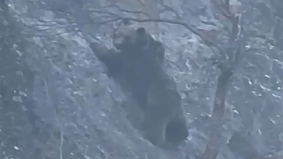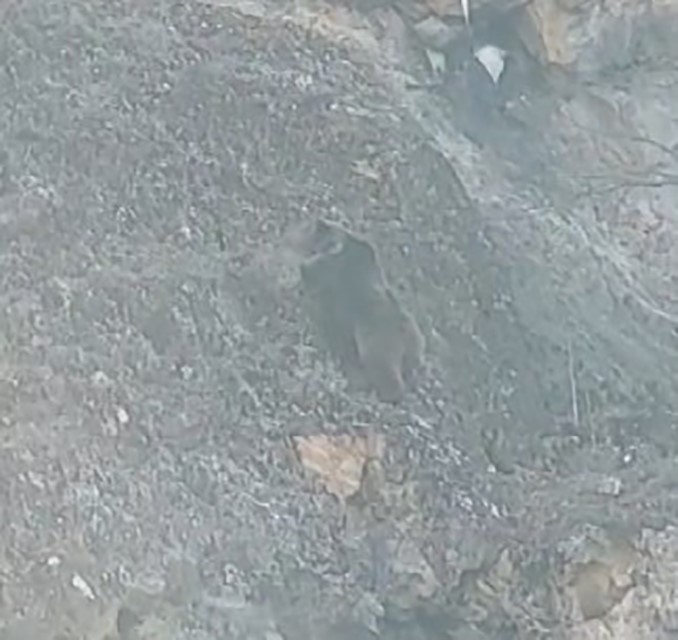 Görevliler ayının sarp kayalıklara tırmanarak leşe ulaşma çabasını cep telefonu kamerasıyla kayıt altına alındı.