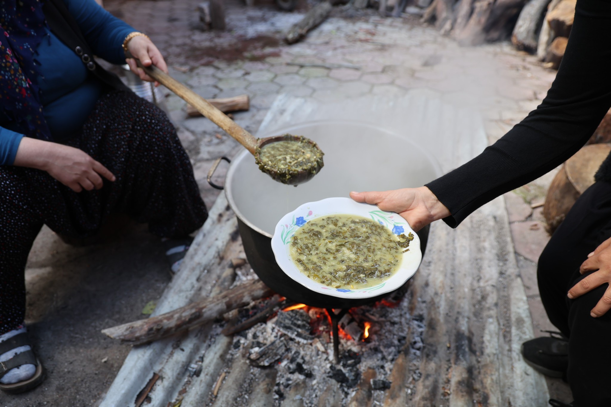 Zehri alınan ot, ardından odun ateşinde kara kazanda yaklaşık 4 saat pişirilerek sofralarda yerini alıyor.