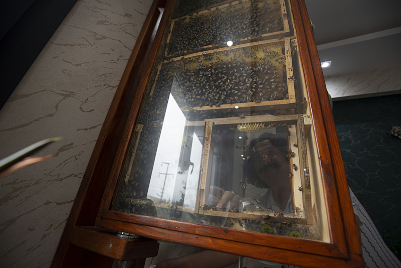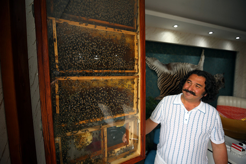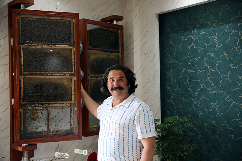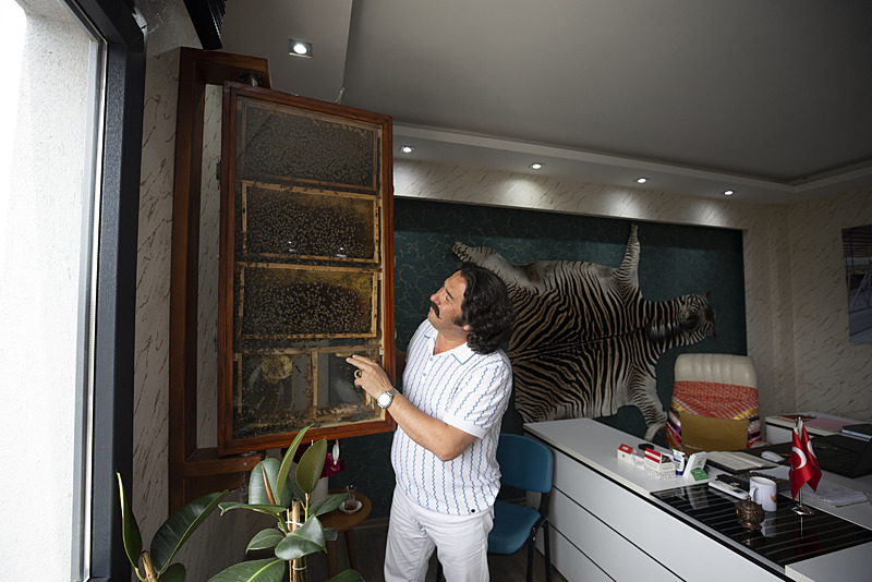 Aydın'da yaşayan bir iş insanı, yurt dışı gezisinde gördüğü köy evinden esinlenerek ofisine kurduğu cam kovanlarda hobi amacıyla arı yetiştiriyor. Cam kovanın içinden dışarıya çıkan bir borunun da bulunduğu sistemde arılar kovana bu borunun içinden giriş çıkış yapıyor. Buradaki kovana polen taşıyan arılar bal üretiyor.