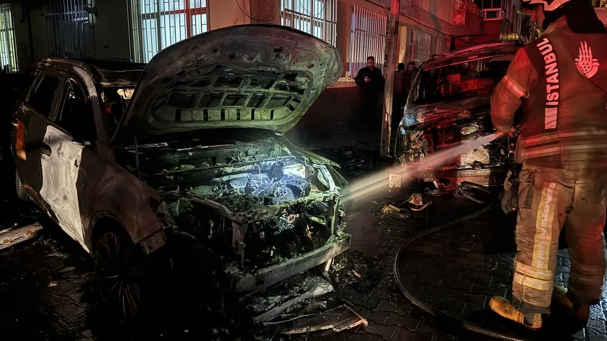 Bahçelievler'de yanan 6 araç kullanılamaz hale geldi (İHA)