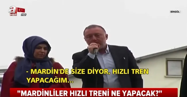 Dün (07.03.2019) ne oldu biliyor musunuz? Mardin'e hızlı tren müjdesi verdim. Dün benim ardından bölücü terör örgütünün partisinin başındaki zat Mardin'de hızlı trenin ne işi var demiş. Aynı SP gibi. Yani Saadet… Onlar da "hızlı trenin Sivas'ta ne işi var" demişti.