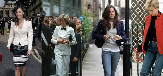 Sade ve minimal çizgileri seven Kate'in gardırobunu biraz karıştırınca ve 'Google' albümündeki fotoğrafları tarayınca, Prenses Diana'nın şıklığını görmek mümkün. Daha çok soft renkleri tercih eden Kate de tıpkı Diana gibi gösterişli takılar takmak yerine küçük kolye ve küpeleri kullanmayı seviyor. Desenli kumaşlar yerine düz olanları tercih ediyor.