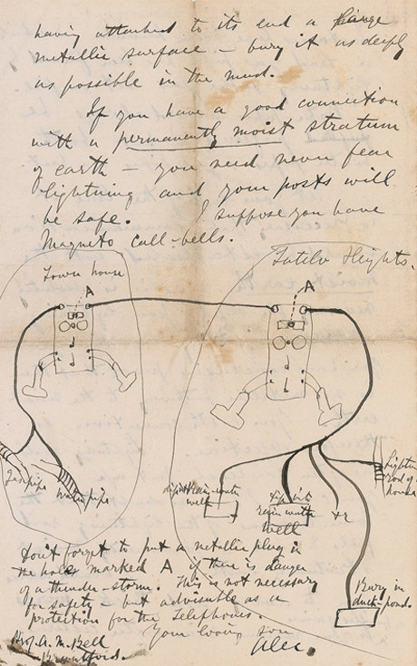 Telefonun mucidi Alexander Graham Bell'in telefon çizimlerinin yer aldığı 1878 yılına ait bir mektubu yaklaşık 93 bin dolara satıldı.