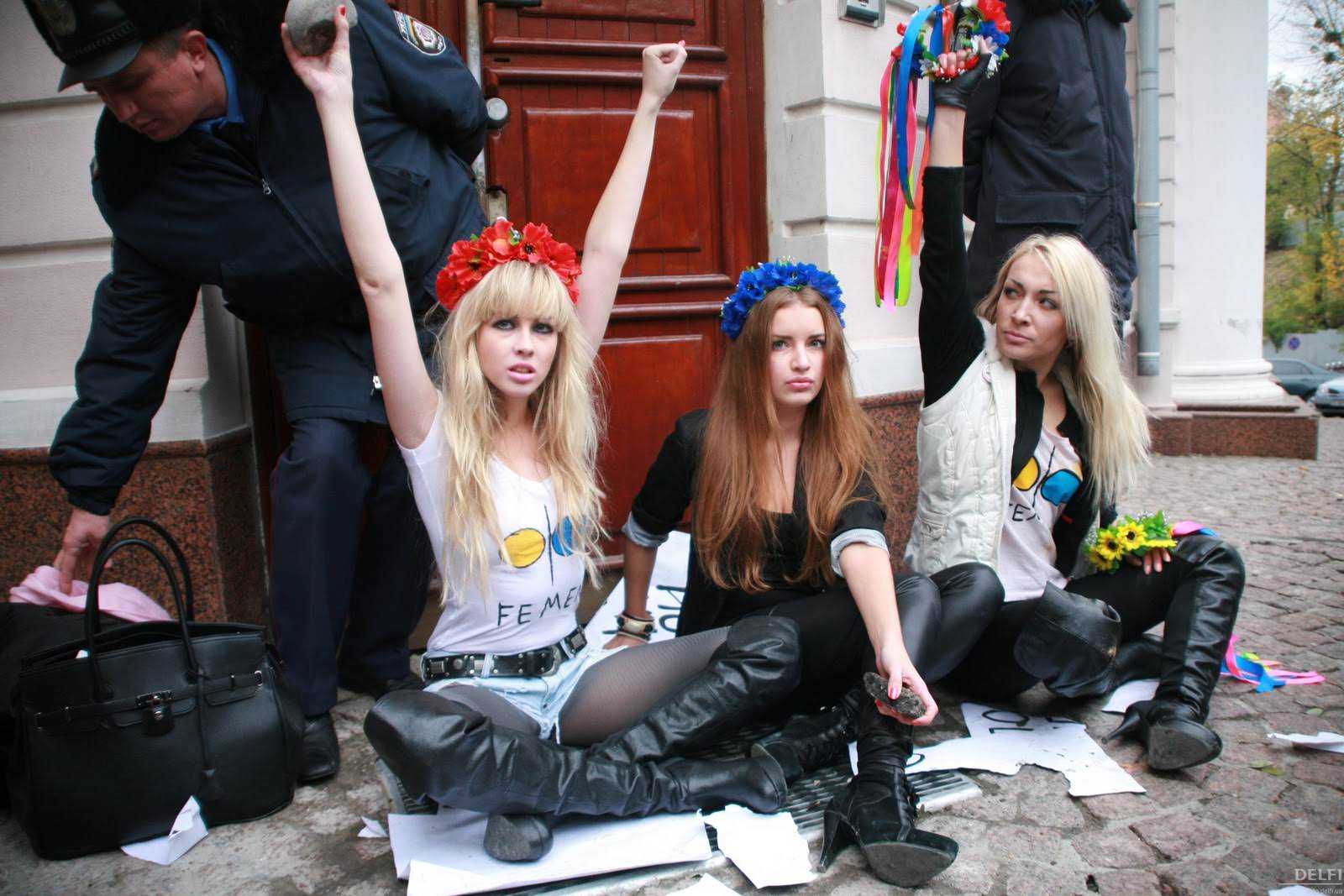 Kiev'deki Türkiye Büyükelçiği önünde "Ukrayna'ya ne için geldiklerini bildikleri Türk erkekleri" telin ediyorlar. "Kadınların dünyayı sallayabileceklerini gördük. Biz kadın olarak dünyayı değiştirebileceğimize inanıyoruz. Maalesef, çıplak ya da üstsüz olunca daha çok dikkat çekiyoruz. Ama bu dikkat çekme amaca ulaşıyorsa, bu da bir yöntemdir" diyorlar.