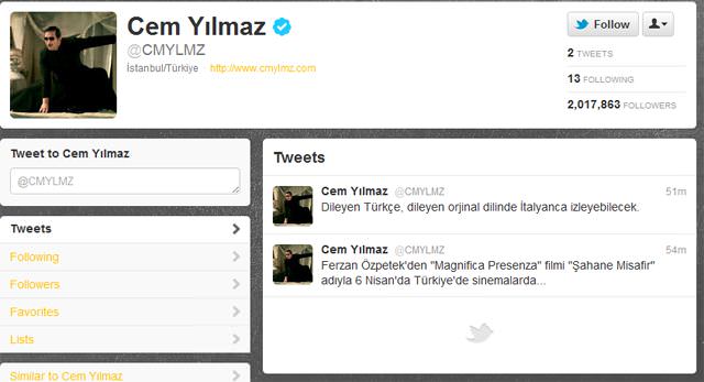 Sosyal medyayı kullanmadığı için eleştirilen Cem Yılmaz'ı Twitter'ı da neredeyse hiç kullanmıyor.