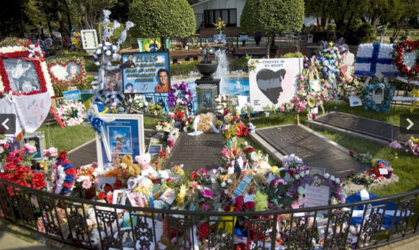 Daha sonra katılımcılar, Elvis Presley'in babası Vernon, annesi Gladys ve büyükannesi Minnie Mae Hood'un yanına defnedildiği aile mezarlığına kadar yürüdü ve şarkıcının mezarına kırmızı ve beyaz çiçeklerden yapılmış kalp şeklinde çelenkler bıraktı.