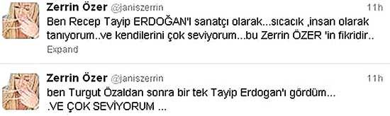 Ünlü pop şarkıcısı Zerrin Özer, Başbakan Recep Tayyip Erdoğan'la ilgili olarak Twitter'da yazdıklarıyla sosyal medyayı salladı.