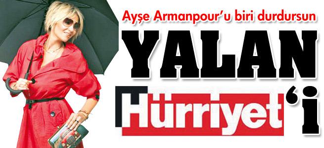 Arman dünkü yazısında Armanpour benzetmemiz için, "Bu hakaret değil, iltifattır" demişti. Taksim'de ortalığı yakanları barışçı diye gösteren, İstanbul'u iç savaşın yaşandığı bir cehennem gibi anlatan Amanpour'un kim olduğunu hatırlatmak isteriz. Amanpour, CNN kurulduğunda Körfez Savaşı'nı tüm çıplaklığıyla yayınladığı için görevden alınan Peter Arnett ve Bernard Shaw'ın yerlerini doldurmak için gelmişti. Görevi de Arnett ve Shaw gibi gerçekleri anlatmak değil çıkarlar için yayın yapmaktı. Bununla gurur duyman bizi çok şaşırttı Ayşe...