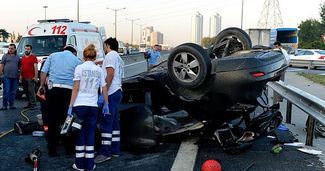 Kazada, Azerbaycan uyruklu Arzu Abdulleyeva otomobilden fırlayarak yaralandı. Sürücü ile kimliği belirlenemeyen diğer kadın da araçta sıkıştı.