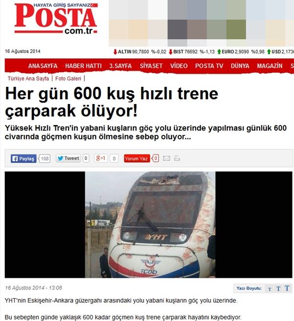 Türkiye Cumhuriyeti Devlet Demiryolları'nın (TCDD) konu ile ilgili 2013 yılında yaptığı açıklamayı da yeniymiş gibi yansıtan medya organları, yaşanan bu üzücü olayın üzerinden 9 ay gibi kısa bir zaman geçmesine rağmen YHT'nin güzergahından geçen kuşların gerçekten de YHT'ye alıştığı ve farklı bölgeden geçtiği gerçeğini gizleme yoluna gitti.