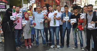 Ülkelerindeki iç savaştan kaçarak, Türkiye'ye sığınan Suriyeli gençler, gördükleri misafirperverliğe teşekkür için Kilis'te karanfil ve broşür dağıttı.