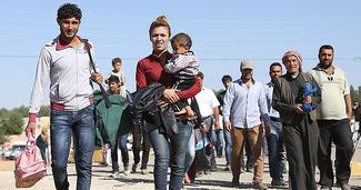 Çoğunluğu kadın ve çocuklardan oluşan kalabalık gruplar, uzun ve can tehlikesi taşıyarak yaşadıkları zorlu yürüyüşün ardından Suriye sınırındaki Suruç ilçesindeki sınır kabul noktasına ulaşıyor.