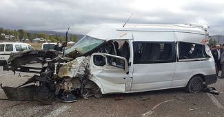 Alınan bilgiye göre, Saray ilçesinin Değirmigöl Mahallesi'nde Saray merkez Ahmet Nacar Lisesi okuluna öğrenci taşıyan Yaver Güven yönetimindeki 65 HC 512 plakalı minibüs, Özalp-Saray karayoluna çıktığı sırada askeri araçla çarpıştı.