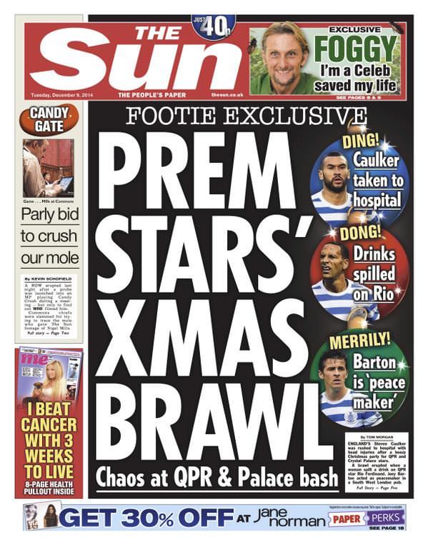 40,000 sterlin haftalık alan QPR 'ın yıldız futbolcusu Steven Caulker'in kavgadan sonra başından kanlar aktığını vurgulayan The Sun, kavgada çirkin sahnelerin yaşandığını yazdı. Polisin çağrıldığı kavgada Joey Barton'un Noel kıyafeti giymiş arkadaşlarını yatıştırmaya çalıştığı öğrenildi.