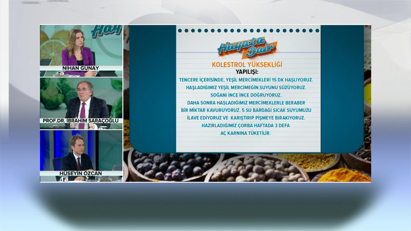 A Haber’de Nihan Günay ve Hüseyin Özcan’ın sunduğu Hayata Dair programında Prof. Dr. İbrahim Saraçoğlu çağımızın hastalığı kolesterol için bitkisel çözüm önerilerinde bulundu.