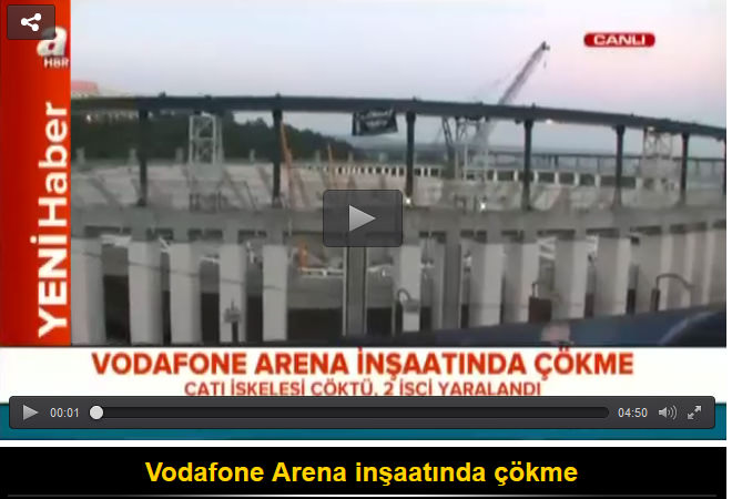 Beşiktaş Kulübü'nün yapımı devam eden Vodafone Arena inşaatında, çatı montajında kullanılan iskelelerden birisinin çökmesi nedeniyle iki işçi yaralandı.