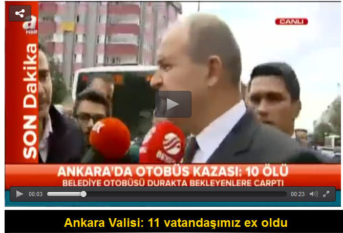 Ankara Valisi Mehmet Kılıçlar, Dikimevi'nde durakta bekleyenlere belediye otobüsünün çarpması sonucu, ilk belirlemelere göre 11 kişinin hayatını kaybettiğini, 7-8 kişinin de yaralandığını bildirdi.