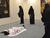 Çarşaf giydirilen beş kadının zincir vurularak galerinin ortasında "sanatseverlerin" beğenisine sunulduğu görüldü.
