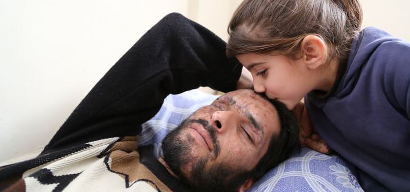 Suriye'nin İdlib kentinde rejim birliklerine ait savaş uçaklarından atılan varil bombası nedeniyle iki bacağını, sağ el parmaklarını, gözlerini ve işitme yetisini kaybeden 27 yaşındaki Mamun Halid Nasır, yaşamını yatağa mahkum şekilde sürdürüyor. Nasır'ın 5 yaşındaki kızı Gözyaşı, 'Türkiye'deki doktorlara sesleniyorum, benim gözlerimi alıp babama verin.'.