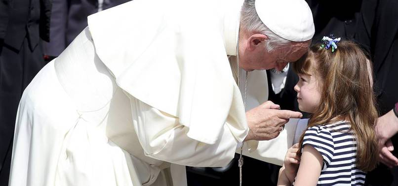 Lizzy'yi kutsayıp kulağına bir şeyler fısıldayan Papa Françesko, küçük kıza bir de tespih hediye etti.