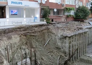 Bahçelievler'de bir inşaatta meydana gelen toprak kayması nedeniyle çevrede bulunan bir apartman güvenlik gerekçesiyle tahliye edildi.