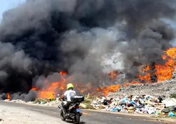 Bodrum'un Yokuşbaşı Mevkisi'nde katı atık vahşi depolama alanında bugün saat 13.20 sıralarında henüz belirlenemeyen bir nedenle yangın çıktı.