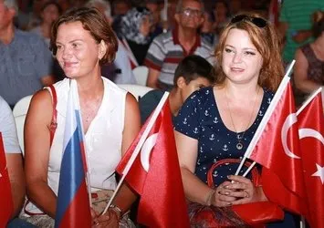 Antalya'da yaşayan Ruslar, ellerinde Türk ve Rusya bayraklarıyla Fetullahçı Terör Örgütü'nün (FETÖ) darbe girişimine karşı demokrasi nöbetine katıldı.