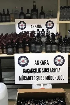 Mamak'ta imalathane olarak kullanılan depoda yapılan aramada 263 şişe sahte içki, 400 kapak, sahte bandrol, 3 bidonda şişelenmeye hazır 20 litre sahte içki, 10 binin üzerinde boş şişe ile dolum amacıyla kullanılan aparat bulundu.