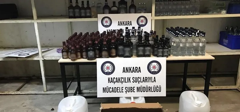 Ankara'da imalathane olarak kullanılan depo ile kuru yemişçiye düzenlenen operasyonda 963 dolu şişe ve şişelenmeye hazır 20 litre sahte içki ile 10 binin üzerinde boş şişe ele geçirildi, 3 kişi gözaltına alındı.