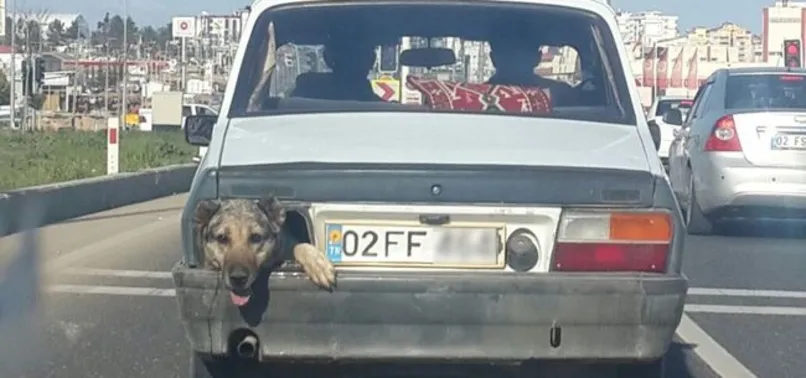 Adıyaman’da, seyir halinde olan bir otomobilin stop lambasından dışarıya çıkan köpek kafası görenleri hayrete düşürdü.