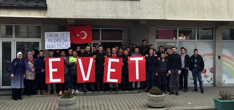 Novi Pazar'daki köprünün iki tarafına Cumhurbaşkanı Recep Tayyip Erdoğan'a referandumda destek amacıyla asılan "Evet" yazılı dövizler, Sancaklılar tarafından büyük ilgiyle karşılandı.