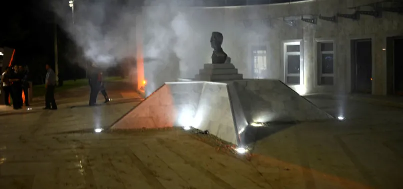 Adana'da 'Bayrak' şiirinin yazarı Arif Nihat Asya'nın büstü ateşe verilip yakılmak istendi.
