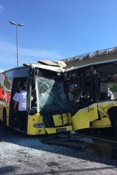 Kadıköy Söğütlüçeşme metrobüs durağında iki metrobüsün kafa kafaya çarpışması sonucu meydana gelen kazada 3’ü ağır 29 kişi yaralandı.