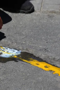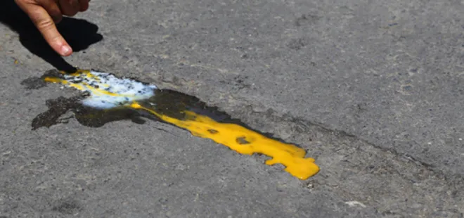 Taksim'de, hava sıcaklığına dikkati çekmek isteyen esnaf, asfalt üzerinde yumurta pişirdi.