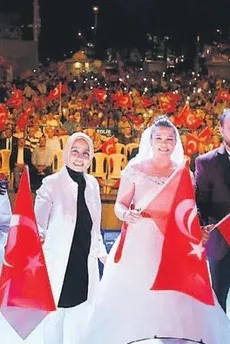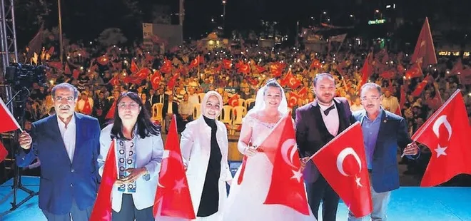 Düğünleri 15 Temmuz Demokrasi ve Milli Birlik Günü’ne denk gelen gelin ve damatlar önce nikâh kıydırdı, ardından meydanlara koşarak el ele demokrasi nöbetine katıldılar