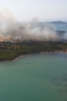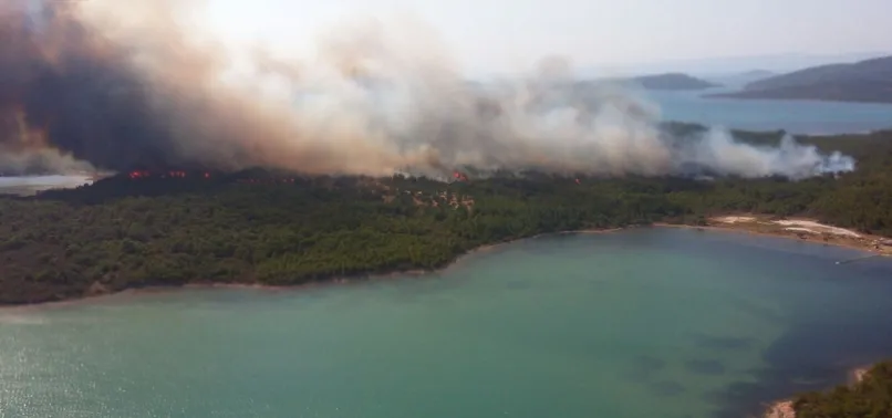 Balıkesir'in Ayvalık ilçesinde, Ayvalık Adaları Tabiat Parkı, Şeytan Sofrası mevkisinde orman yangını çıktı.