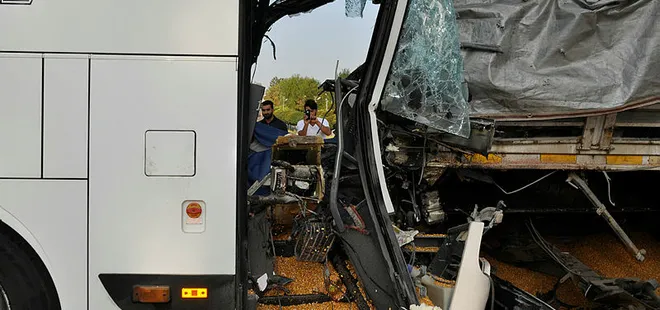 Mardin'den Ankara'ya giden 73 DZ 935 plakalı yolcu otobüsü, kırmızı ışıkta 73 FE 333 plakalı mısır yüklü TIR'a arkadan çarptı.