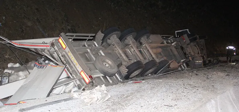 Devrilen TIR'ın altında can verdi