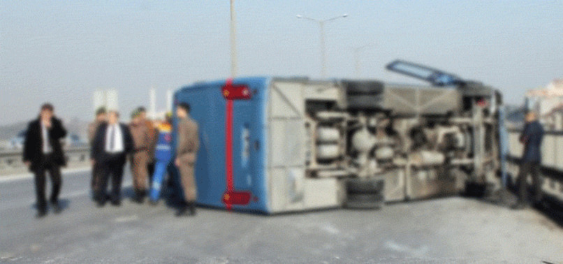 Ağrı'dan Rize'ye sevk edilen mahkumları taşıyan cezaevi aracı, Erzurum'un Pasinler ilçesinde kontrolden çıkarak devrildi.