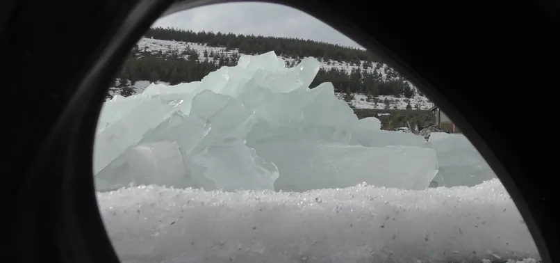 Çıldır Gölü'nde mevsim normalleri üzerinde seyreden hava sıcaklığı ve rüzgârın etkisiyle oluşan buz katmanlarının kıyıya vurması ile muhteşem görüntüler oluştu.