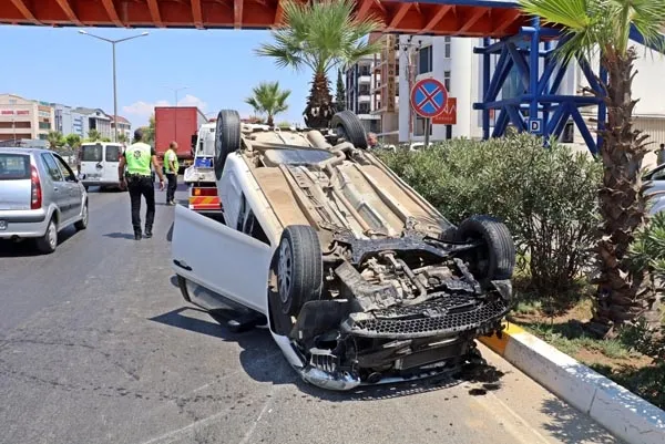 Edinilen bilgiye göre, kaza, 13.30 sıralarında Kepez ilçesi Teomanpaşa Mahallesi'nde meydana geldi. 07 ESP 16 plakalı aracın sürücüsü Şule Ç. ile ismi öğrenilemeyen eşi, araçlarıyla ilerlerken sürücü hakimiyetini yitiren Şule Ç., otomobiliyle Gazi Bulvarı ile ile yan yolu ayıran refüjlerdeki bariyerlere çarptı. Çarpmanın şiddetiyle araç takla attı. Çevredeki vatandaşların yardımıyla otomobilden çıkartılan çift, şans eseri kazayı yara almadan atlattı.
