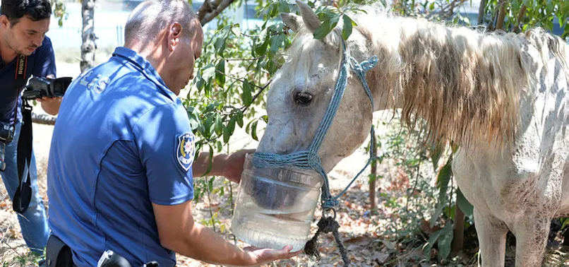 Gelen polis ekipleri, yanında kan izlerine rastladığı atın sağ gözünün enfeksiyon kaptığını gördü. Polis memurları, ata plastik kovalarla su verdi.