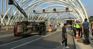 Alınan bilgiye göre, E.K yönetimindeki 34 TA 1158 plakalı cip, Avrupa Yakası'na geçerken henüz belirlenemeyen nedenle gişelere çarptıktan sonra devrildi.
