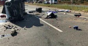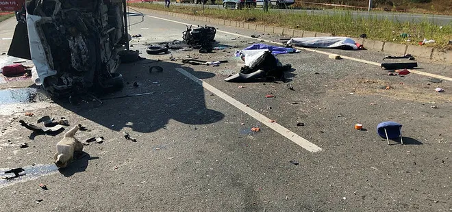 Sakarya'nın Kocaali ilçesinde, hafif ticari araç motosikletli gruba çarparak devrildi. 3 motosiklette bulunan 6 kişi ile, hafif ticari araçta bulunan 2 kişi olay yerinde yaşamlarını kaybetti. Olay yerine 112 Acil ve trafik ekipleri sevk edildi.