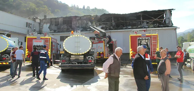 Trabzon'un Araklı ilçesinin Küçükdere mevkiinde bulunan süt ürünleri imalatı yapan bir fabrikada bugün sabah saat 08.45 sıralarında henüz bilinmeyen bir nedenle çıkan yangın fabrikanın çatısını sardı.