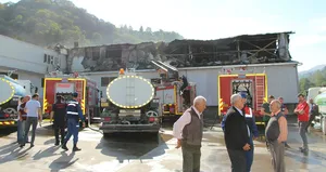 Trabzon'un Araklı ilçesinde süt ürünleri imalatı yapan bir fabrikada sabah saatlerinde çıkan yangın söndürülürken, itfaiye ekiplerinin soğutma çalışması başlattı.