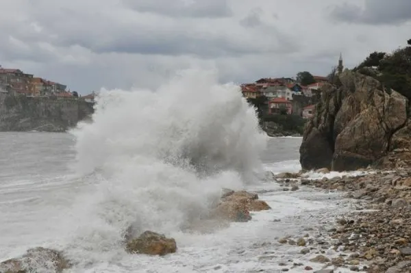 Bartın Amasra'da, saatteki hızı 30 kilometreyi bulan rüzgar nedeniyle denizde dev dalgalar oluştu. Amasra Küçük Liman'da kayalara çarpan dalgaların boyu, yer yer 5 metreyi buldu. Mendireği aşan dalgalar, liman içine kadar geldi.