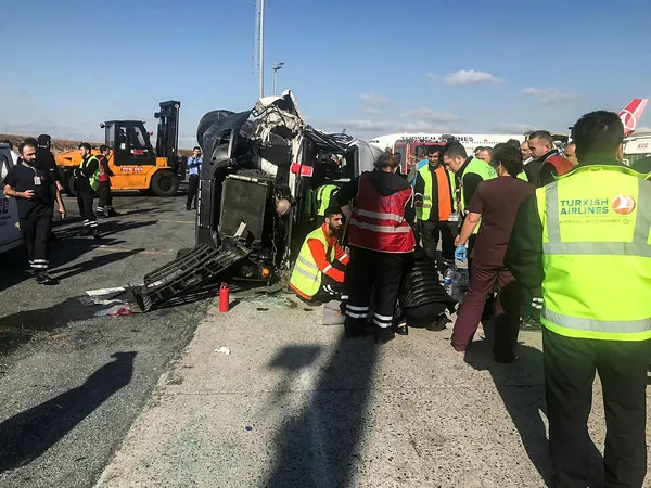 Atatürk Havalimanı apronunda iki servis aracının çarpışması sonucu 9 kişi yaralandı.