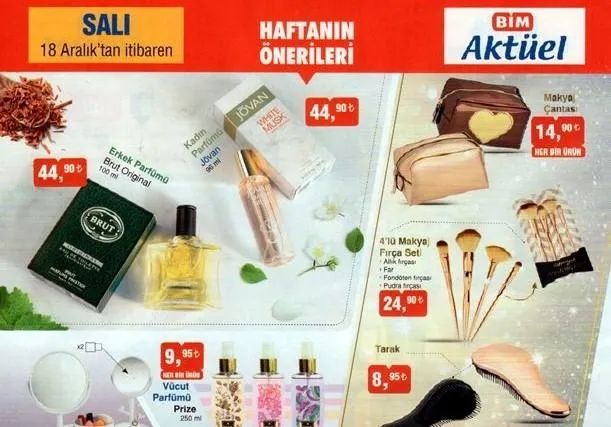BİM aktüel ürünler kataloğu 18 Aralık ürünleri bugün raflardaki yerlerini aldı. BİM aktüel ürünler kataloğu ürünleri bu hafta kadınları sevindirecek. Birçok makyaj malzemesi piyasa koşullarından daha uygun fiyatlarla satılacak. Kadınlar BİM aktüel ürünler kataloğu ile tanıtılan ürünlere yoğun ilgi gösterdi. BİM aktüel ürünler kataloğunda neler var, bir göz atalım. İşte BİM aktüel ürünler kataloğu (18 Aralık 2018)